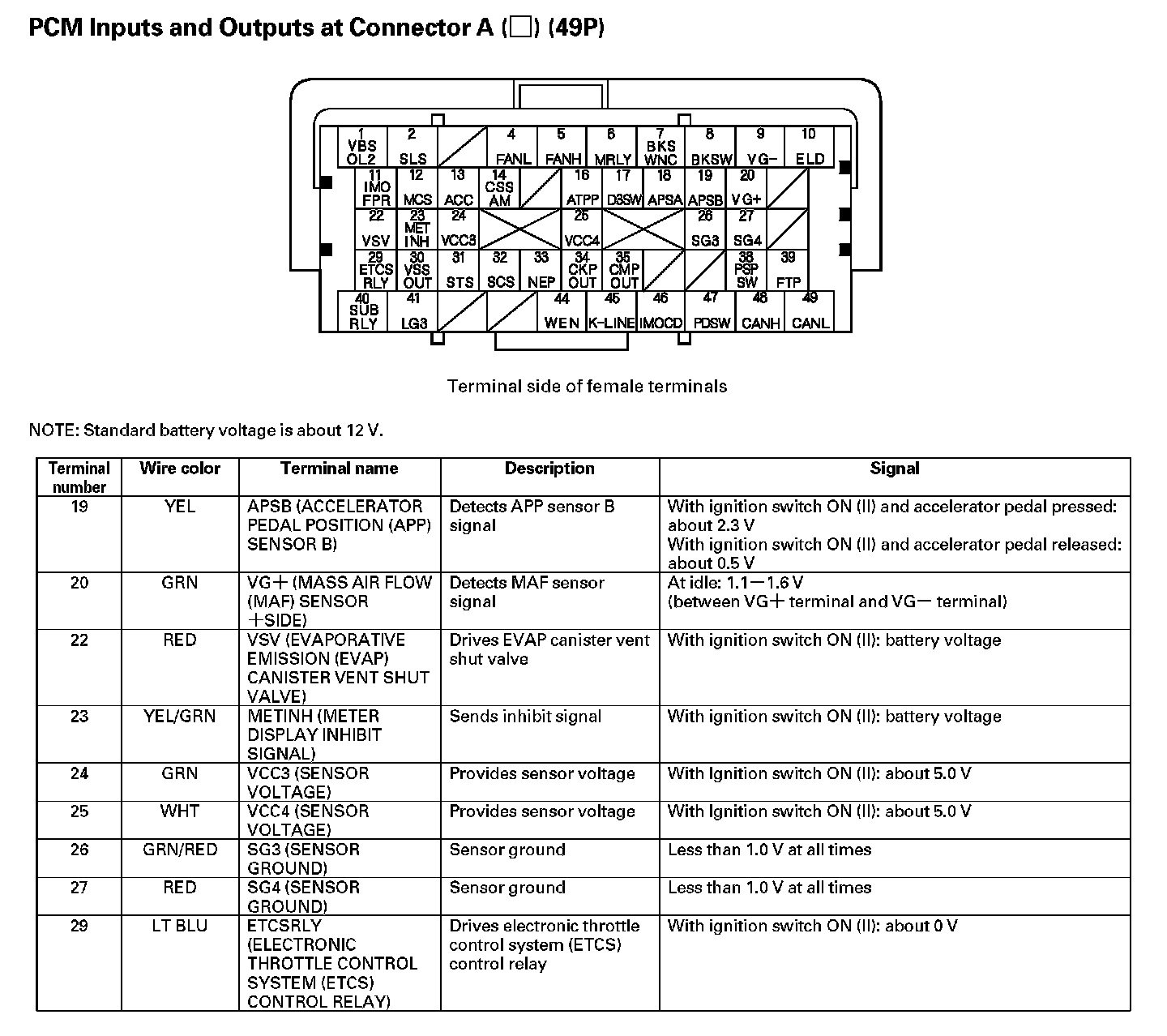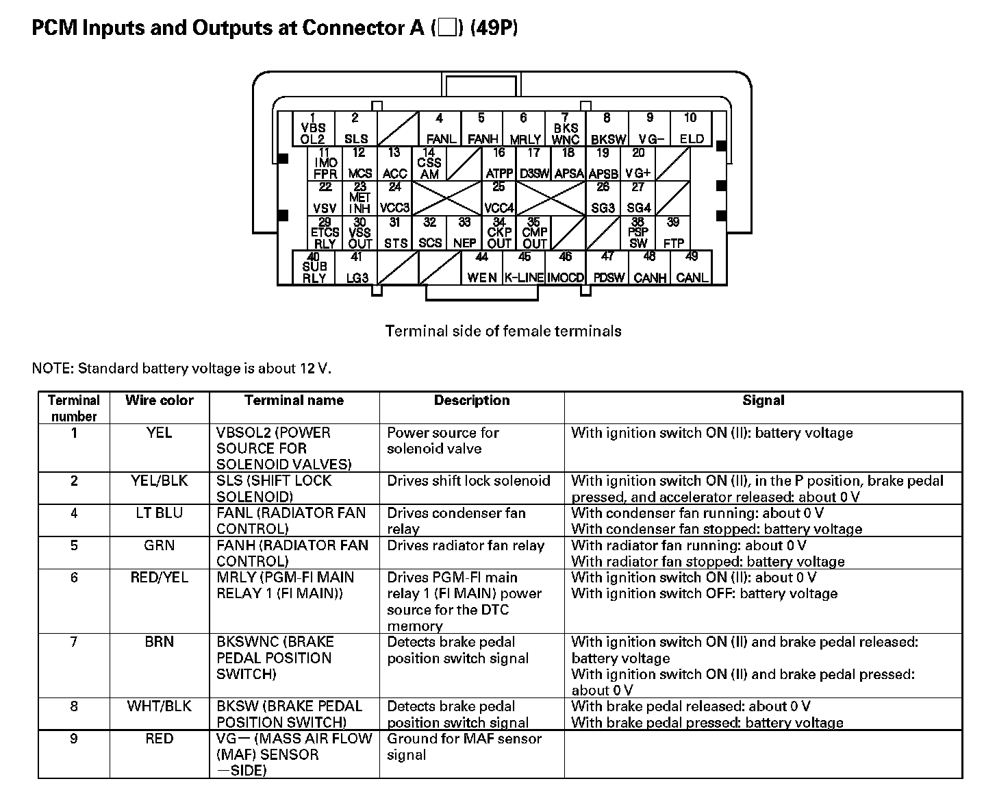 PCM Inputs And Outputs At Connector A (49P) Part 5: