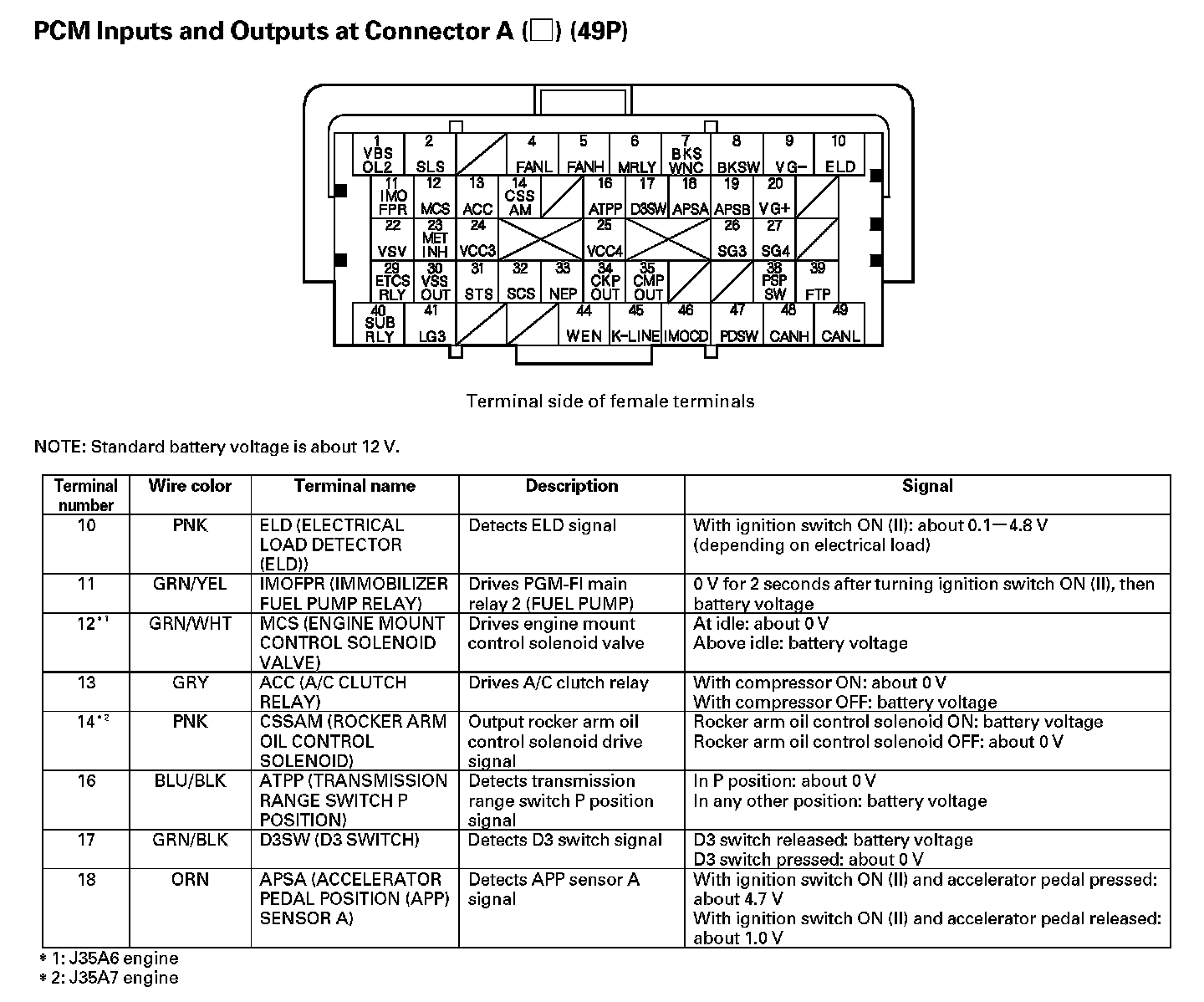 PCM Inputs And Outputs At Connector A (49P) Part 1: