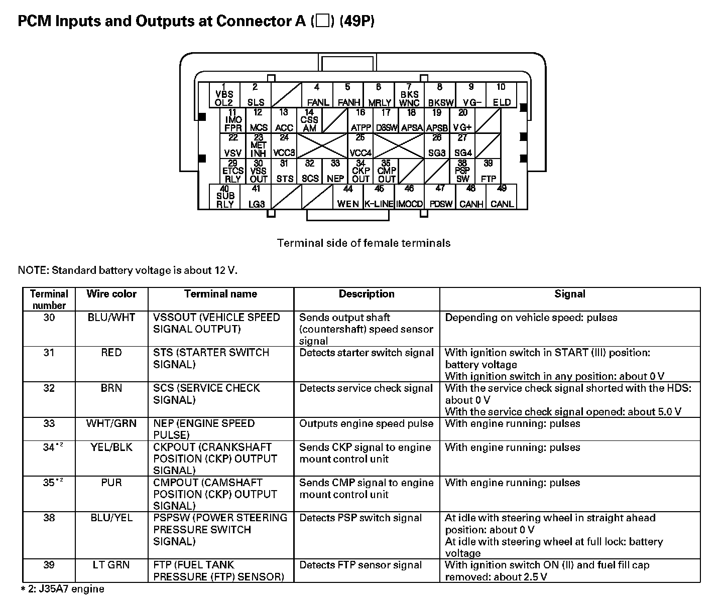 PCM Inputs And Outputs At Connector A (49P) Part 2: