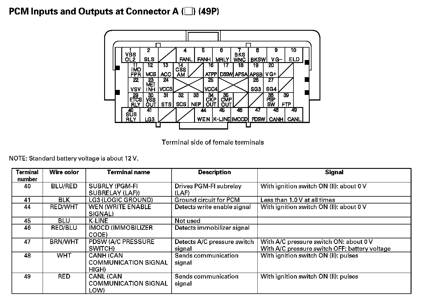 PCM Inputs And Outputs At Connector A (49P) Part 4: