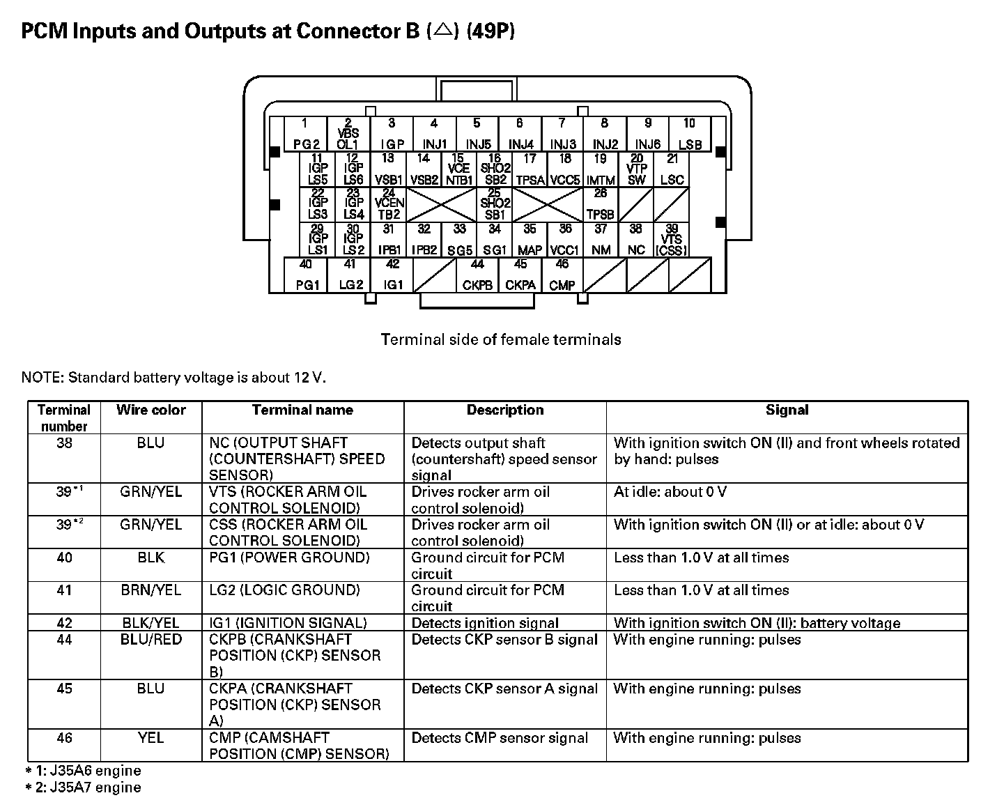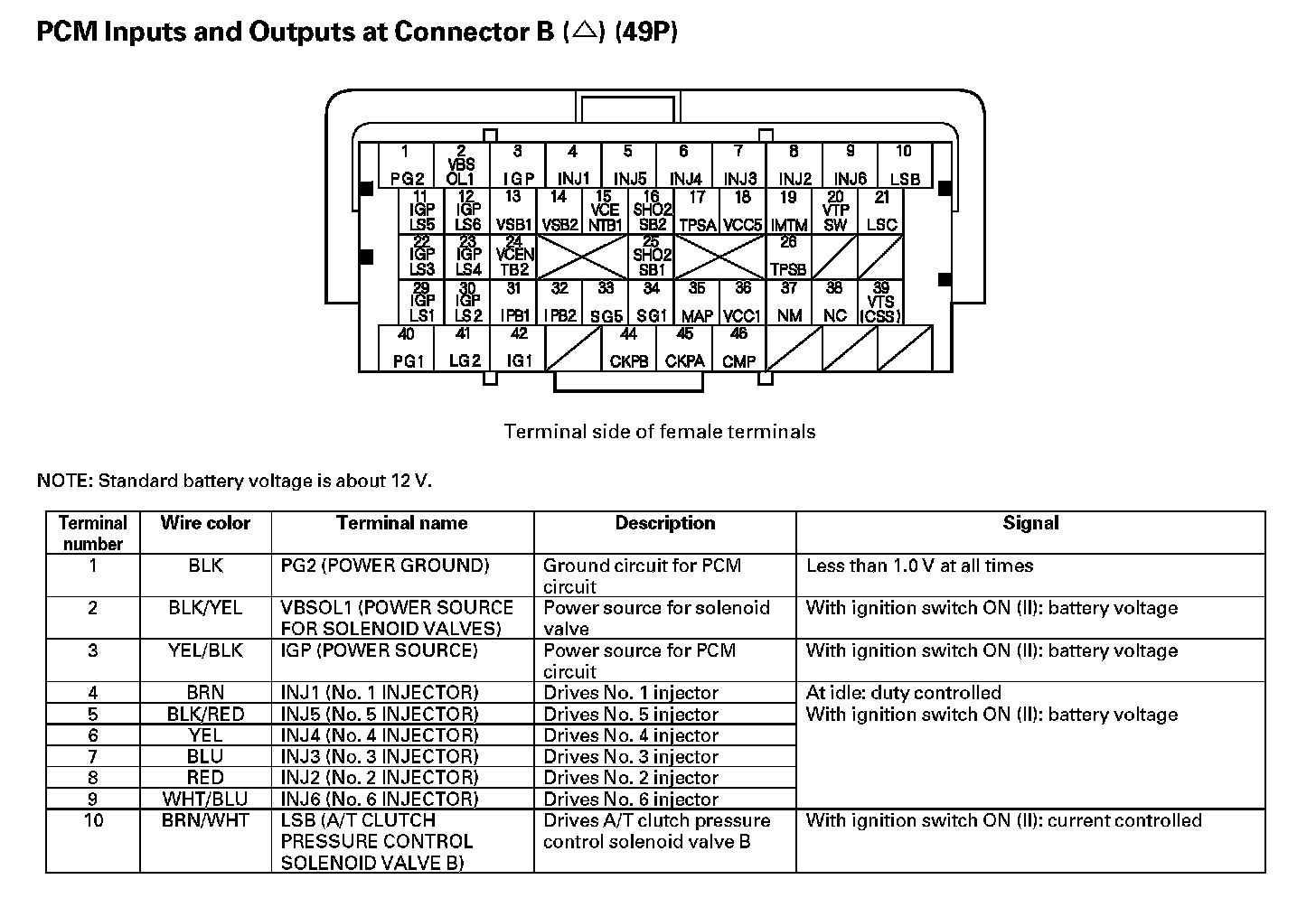 PCM Inputs And Outputs At Connector B (49P) Part 1: