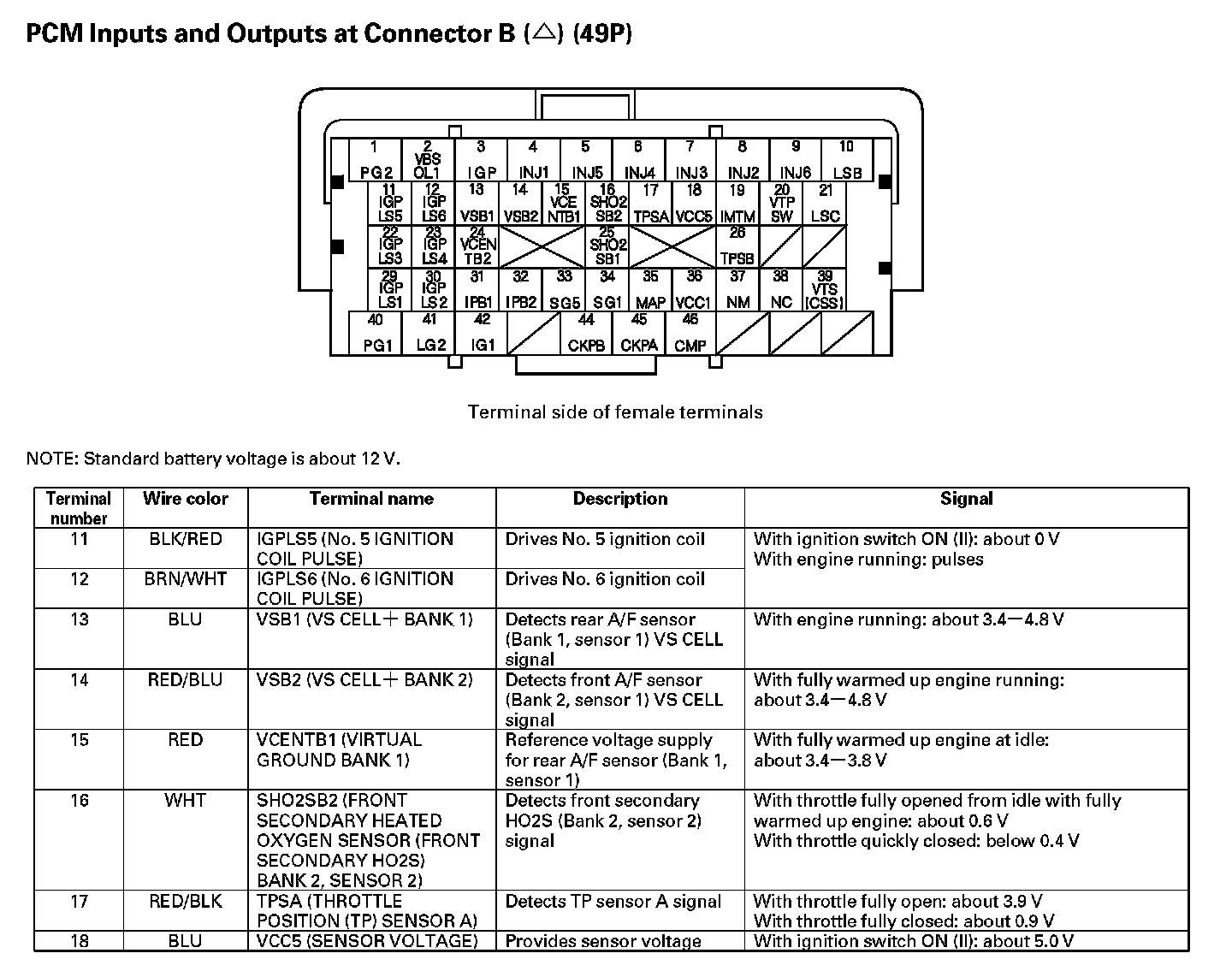 PCM Inputs And Outputs At Connector B (49P) Part 5: