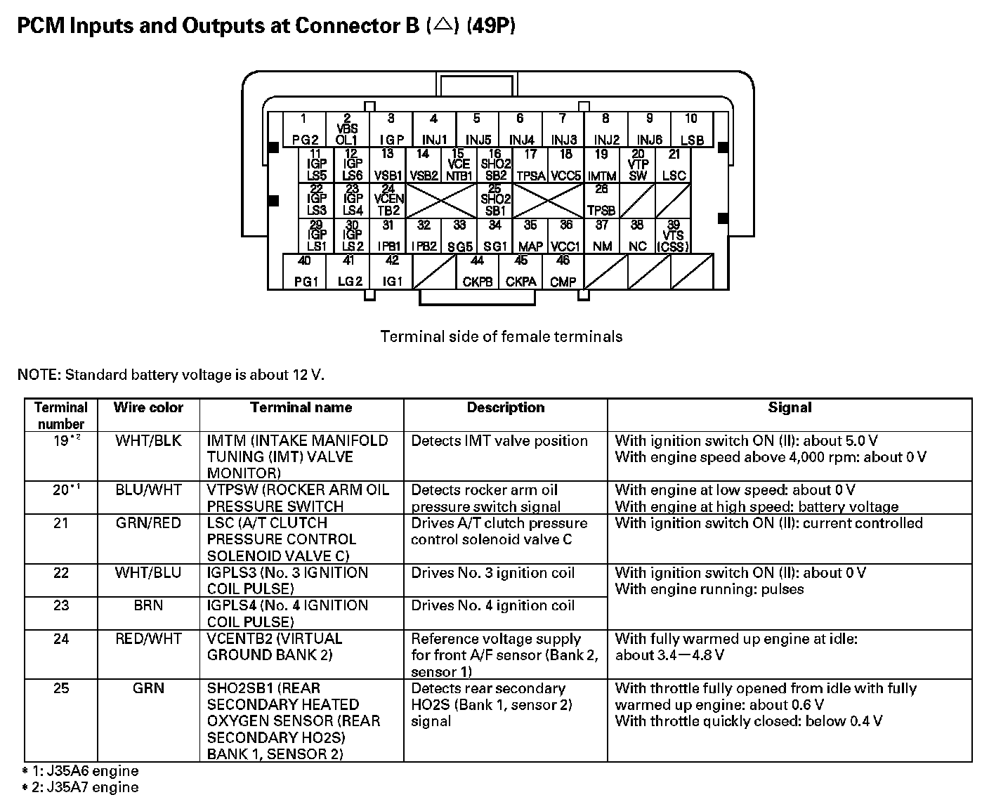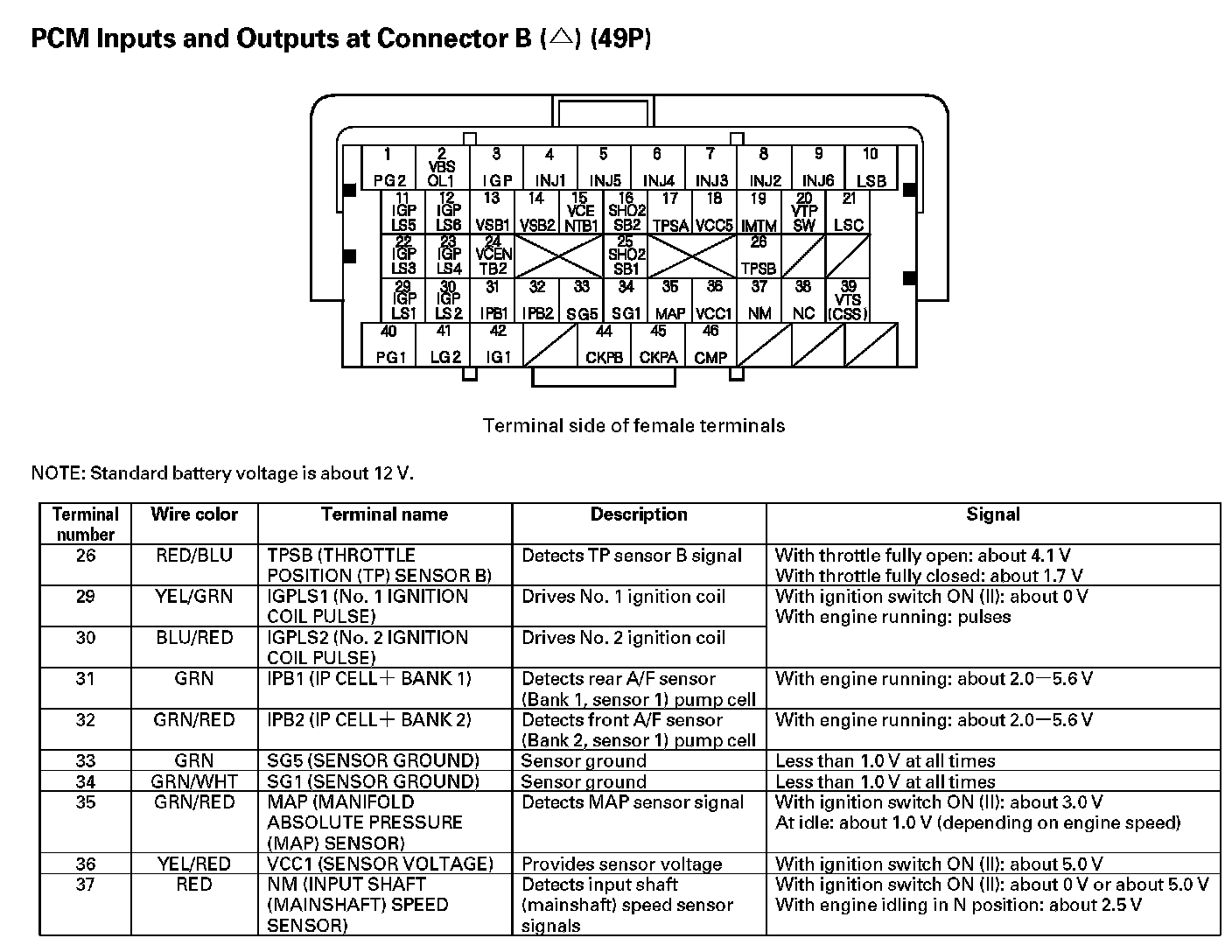 PCM Inputs And Outputs At Connector B (49P) Part 4: