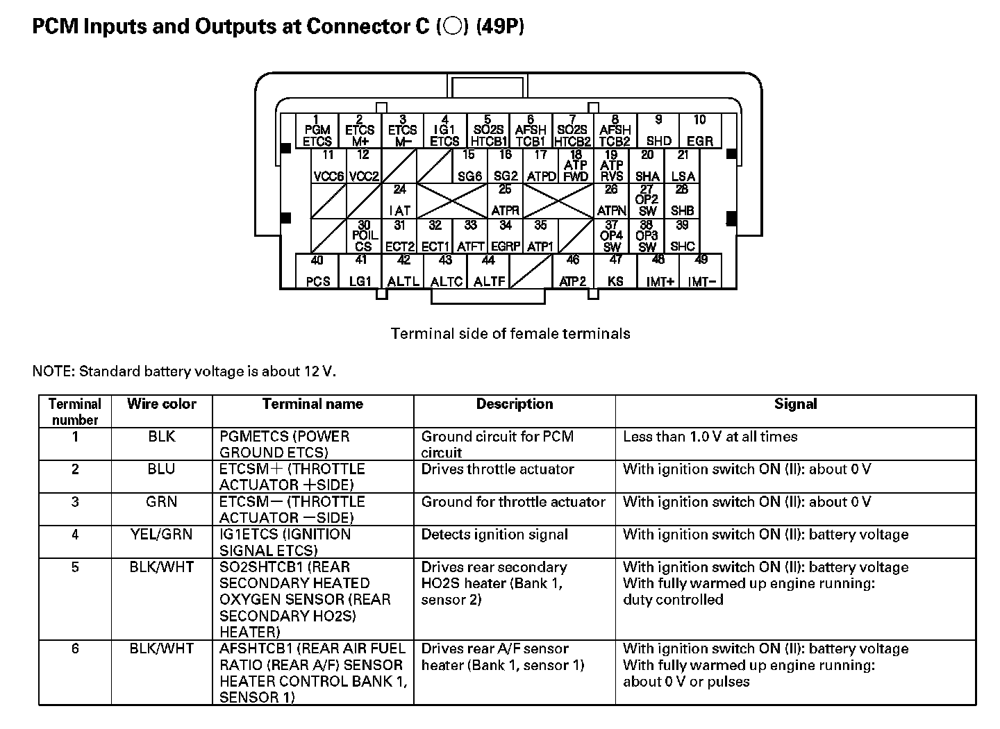 PCM Inputs And Outputs At Connector C (49P) Part 6: