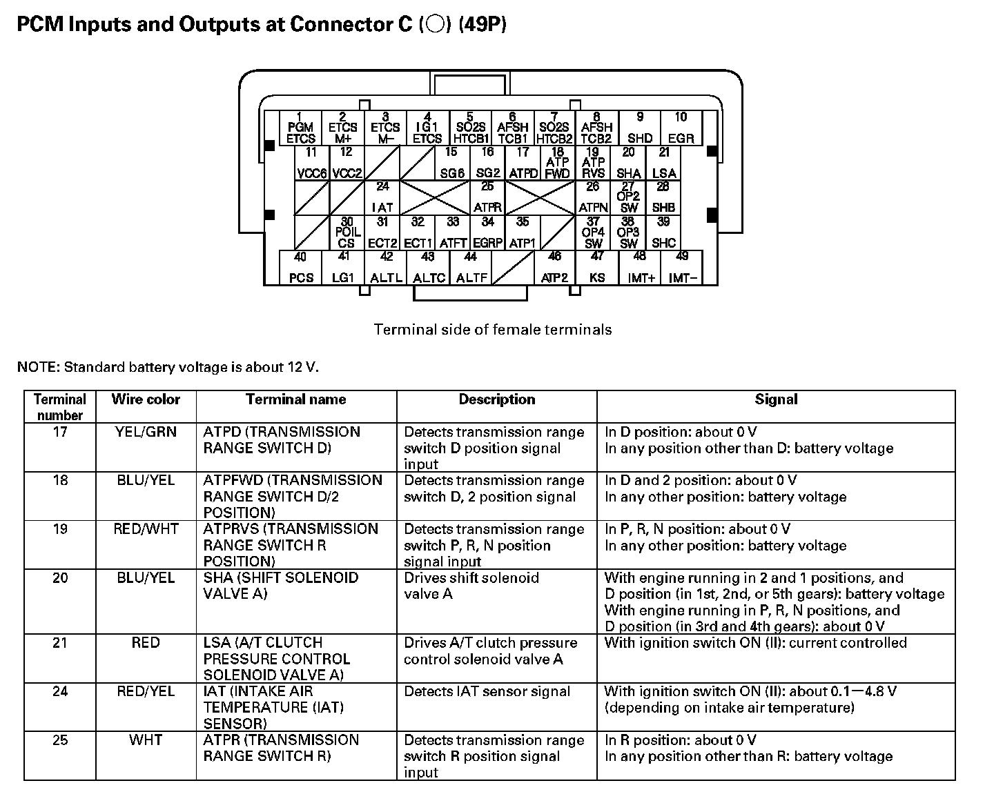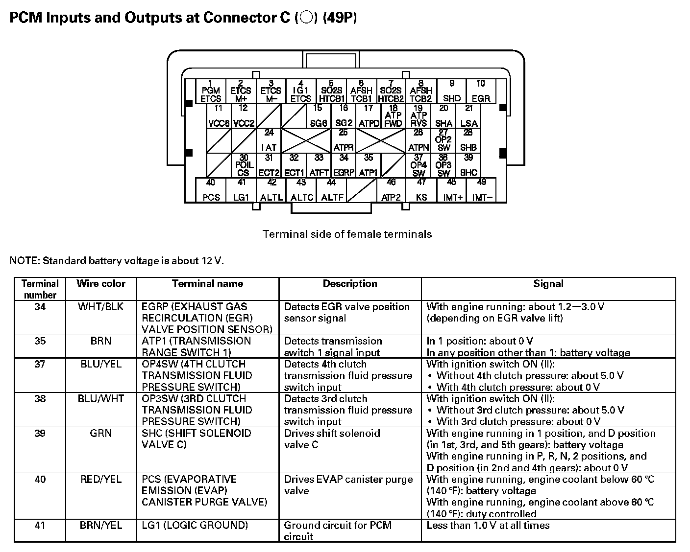 PCM Inputs And Outputs At Connector C (49P) Part 3: