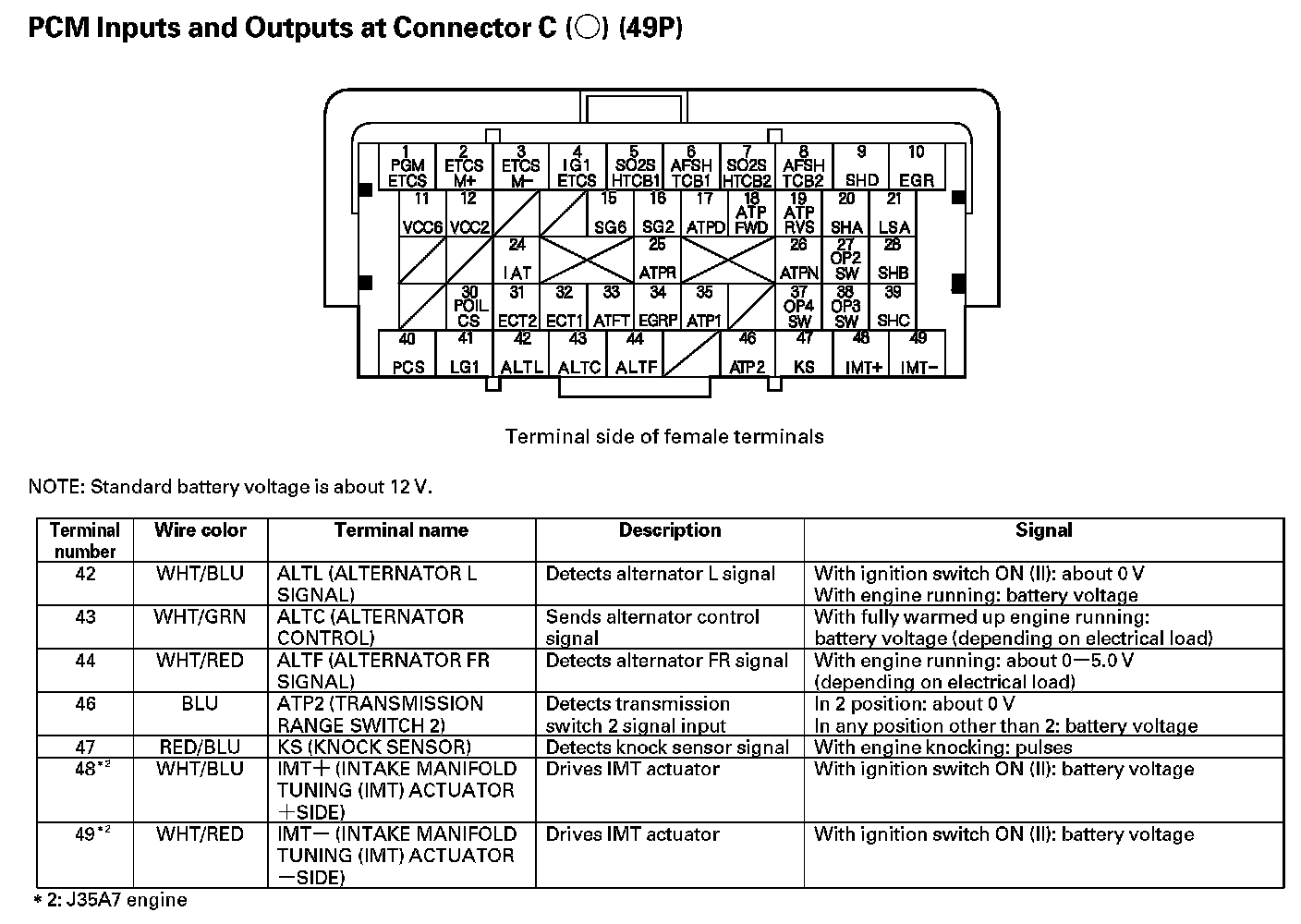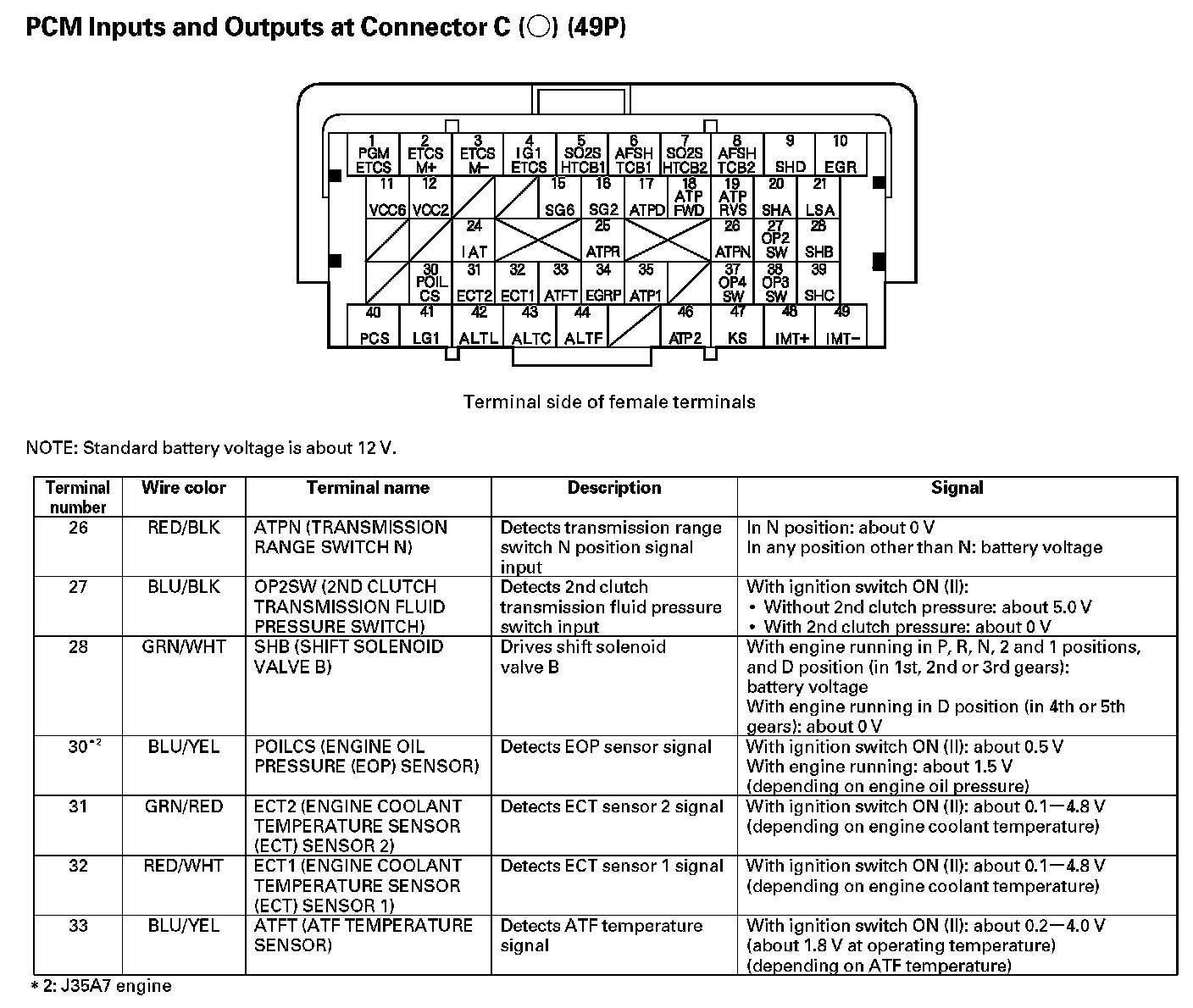 PCM Inputs And Outputs At Connector C (49P) Part 2: