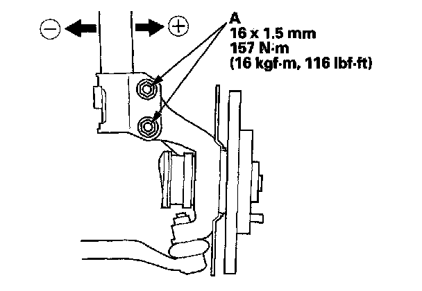 ^ The camber angle can be adjusted up to ±25' (center of tolerance) by replacing one damper pinch bolt with the adjusting bolt.