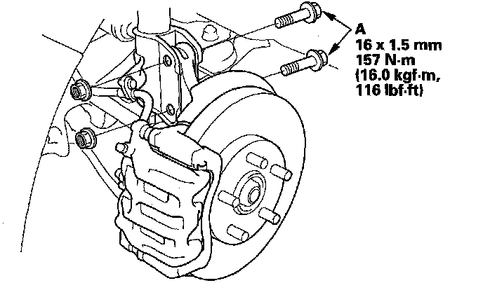 9. Replace the damper pinch bolts with the adjusting bolts (A), and adjust the camber angle.