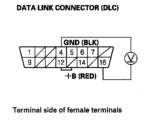 24. Measure voltage between DLC terminal No. 16 and body ground.