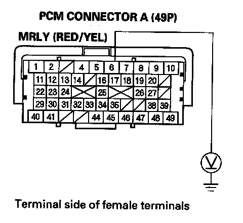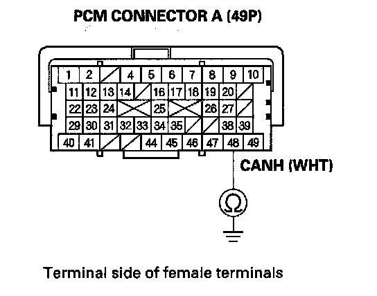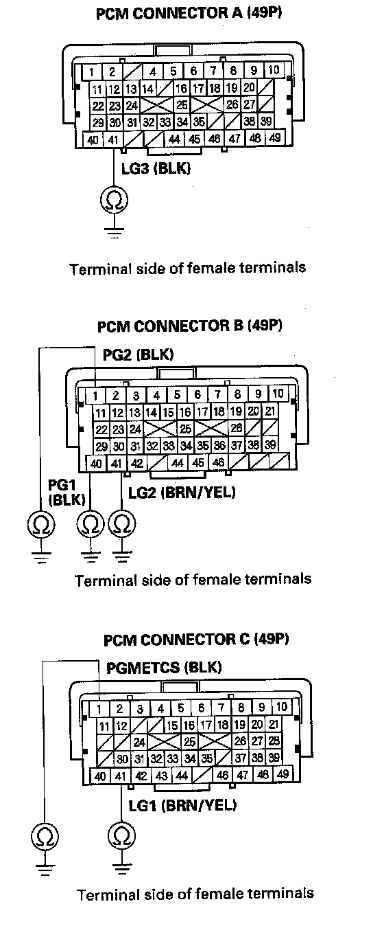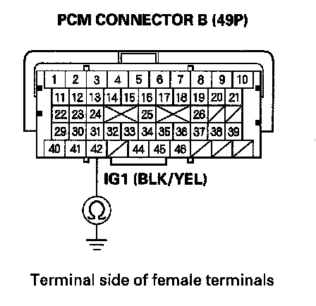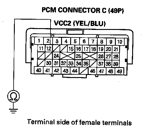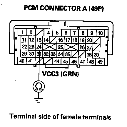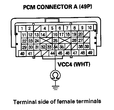 34. Check for continuity between PCM connector terminal A49 and body ground.