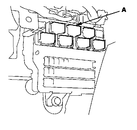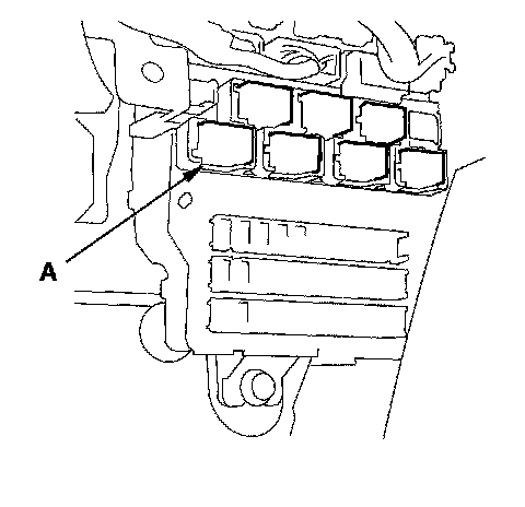 39. Remove PGM-FI main relay 1 (FI MAIN) (A) from the driver's under-dash fuse/relay box.