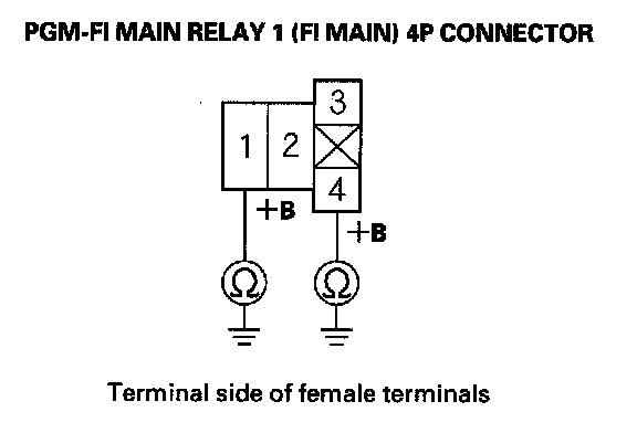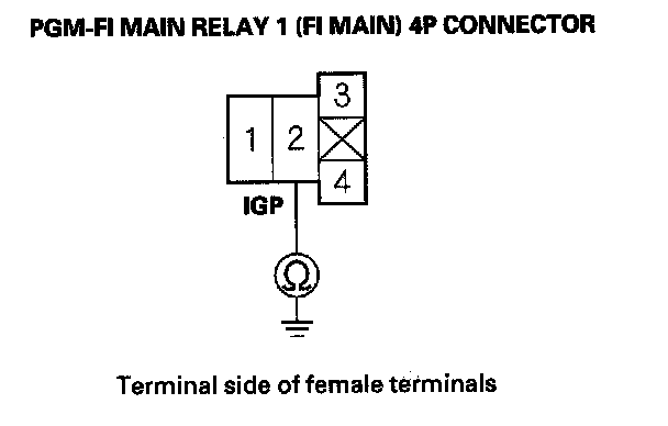 40. Check for continuity between body ground and PGM-FI main relay 1 (FI MAIN) 4P connector terminals No. 1 and No. 4 individually.
