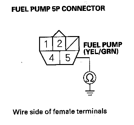54. Check for continuity between fuel pump 5P connector terminal No. 5 and body ground.