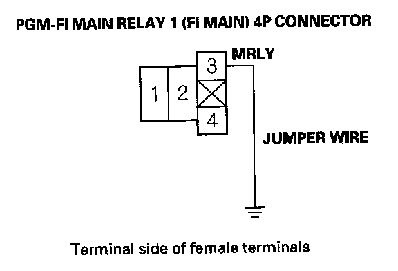 75. Connect PGM-FI main relay 1 (FI MAIN) 4P connector terminal No. 2 to body ground with a jumper wire.