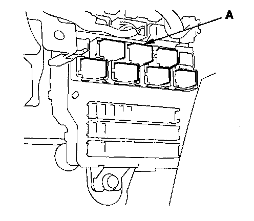 71. Remove PGM-FI main relay 1 (FI MAIN) (A) from the driver's under-dash fuse/relay box.
