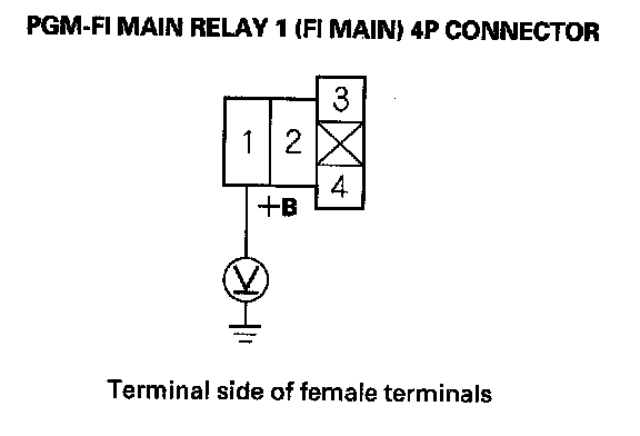 73. Measure voltage between PGM-FI main relay 1 (FI MAIN) 4P connector terminal No. 1 and body ground.