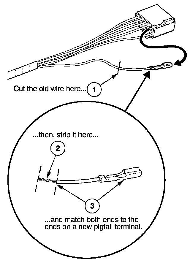 3. Select a pigtail terminal that matches the original wire at both ends (same kind of terminal and same diameter bare wire).