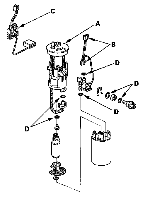 - When installing the fuel gauge sending unit (C), make sure the connection is secure and the connector is firmly locked into place. Be careful not to bend or twist it excessively.