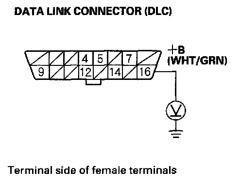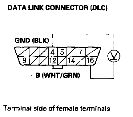 1. Measure voltage between DLC terminal No.16 and body ground.