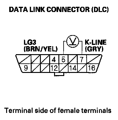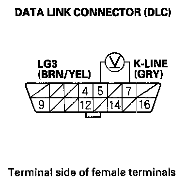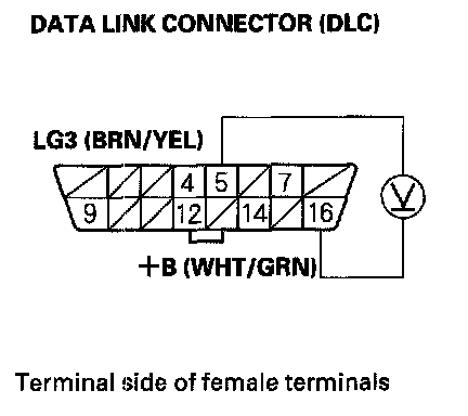 3. Measure voltage between DLC terminals No.5 and No.16.