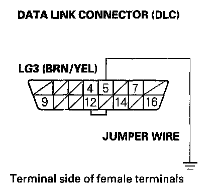 6. Connect the DLC terminal No.5 to body ground with a jumper wire.