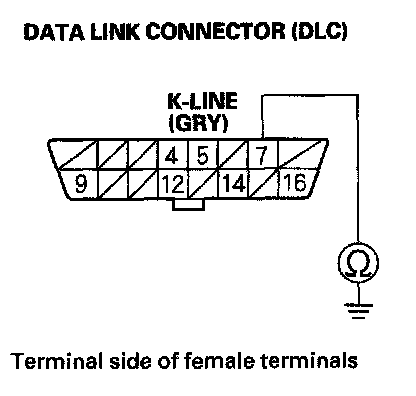13. Check for continuity between DLC terminal No.7 and body ground.
