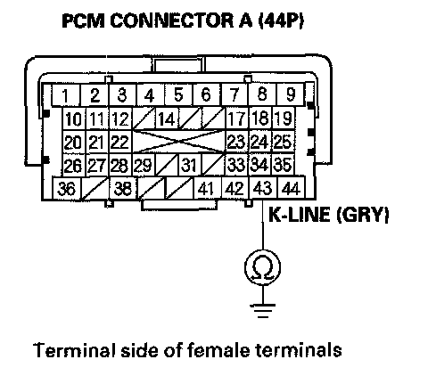 NO - Repair open in the wire between DLC terminal No.7 and the PCM (A43). After repairing the wire, check for a DTC with the HDS, and go to the DTC troubleshooting. DTC List - Fuel and Emissions