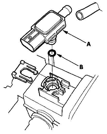 Install the parts in the reverse order of removal with a new O-ring (B).