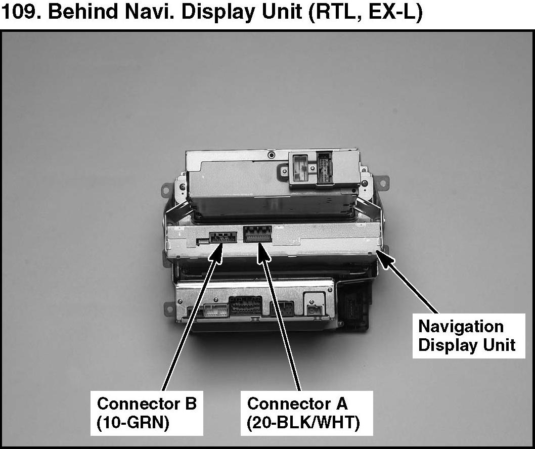 109. Behind Navi. Display Unit (RTL, EX-L):