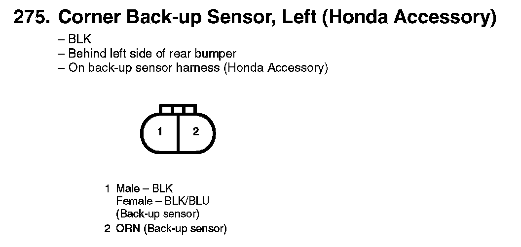 275. Corner Back-up Sensor, Left (Honda Accessory):