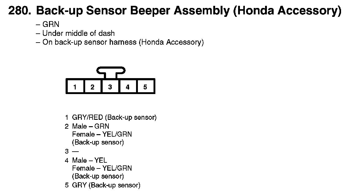 280. Back-Up Sensor Beeper Assembly (Honda Accessory):