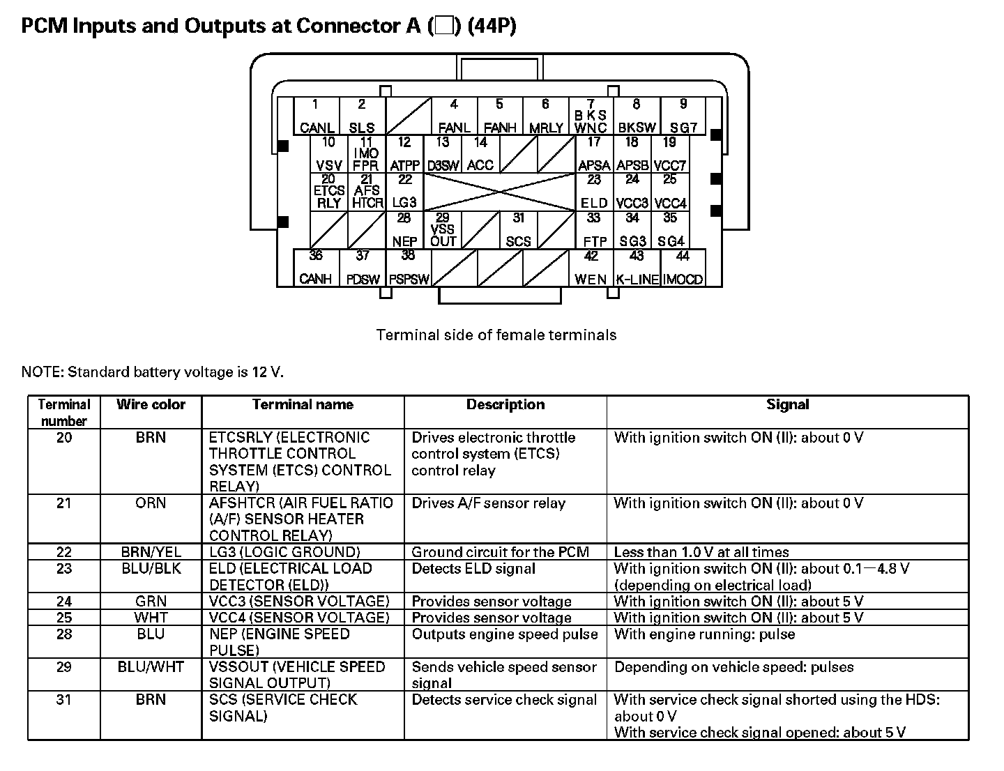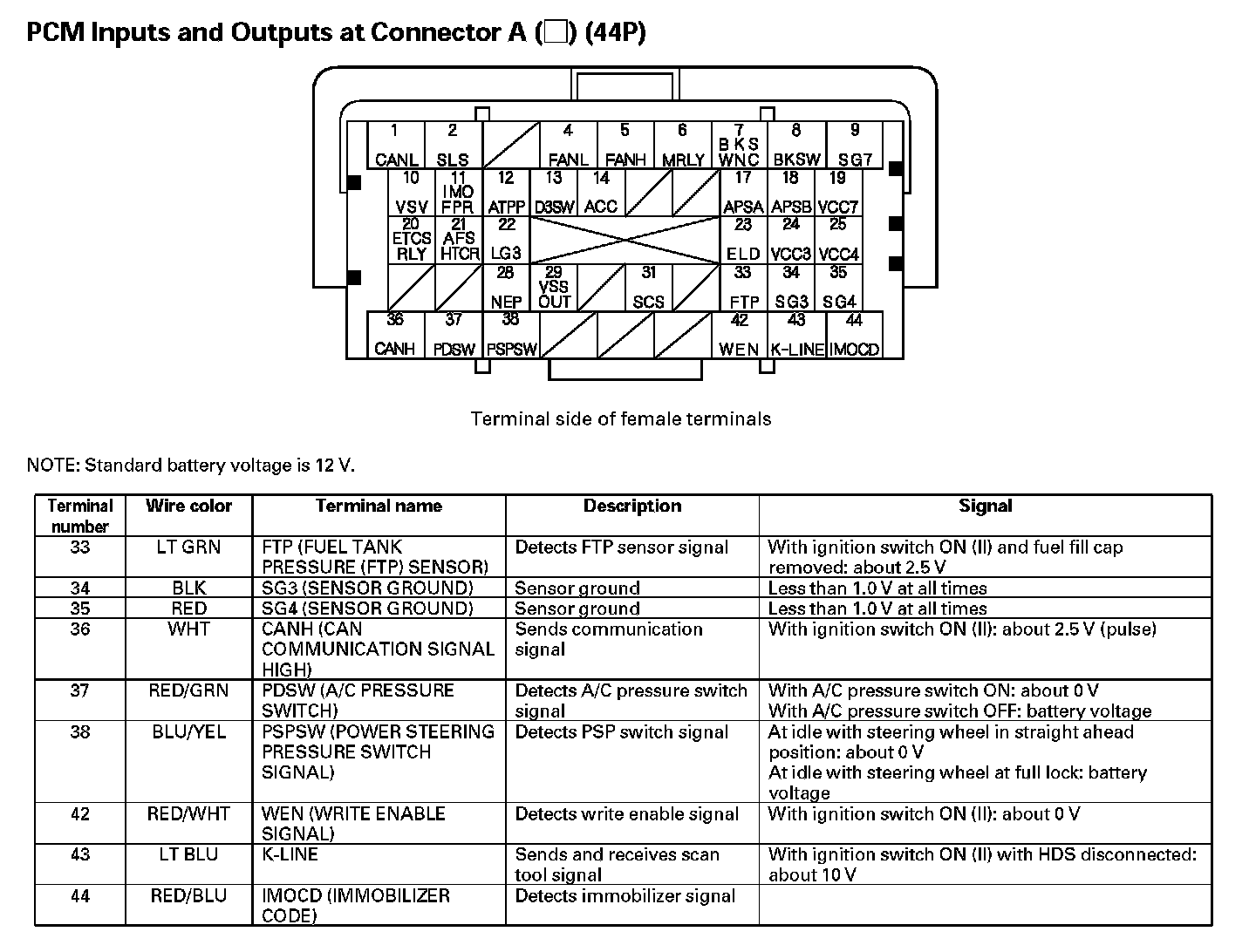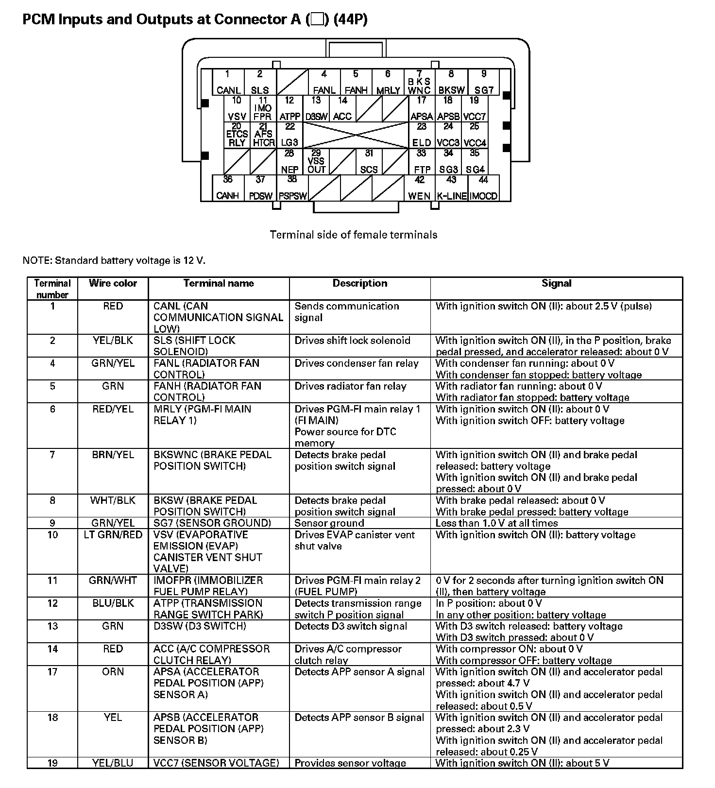PCM Inputs And Outputs At Connector A (44P) (Part 1):