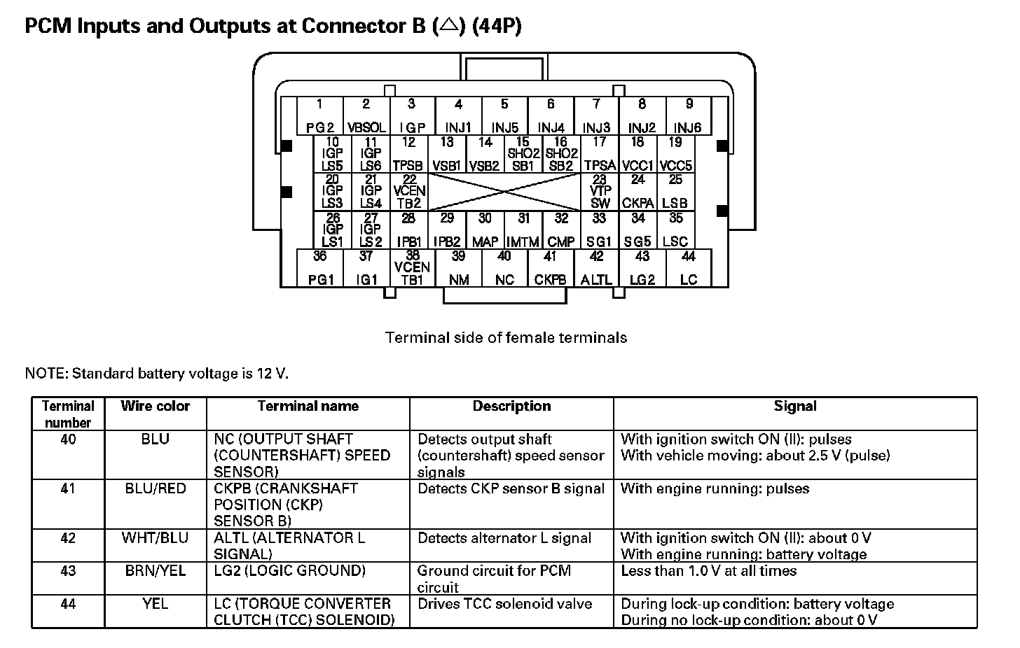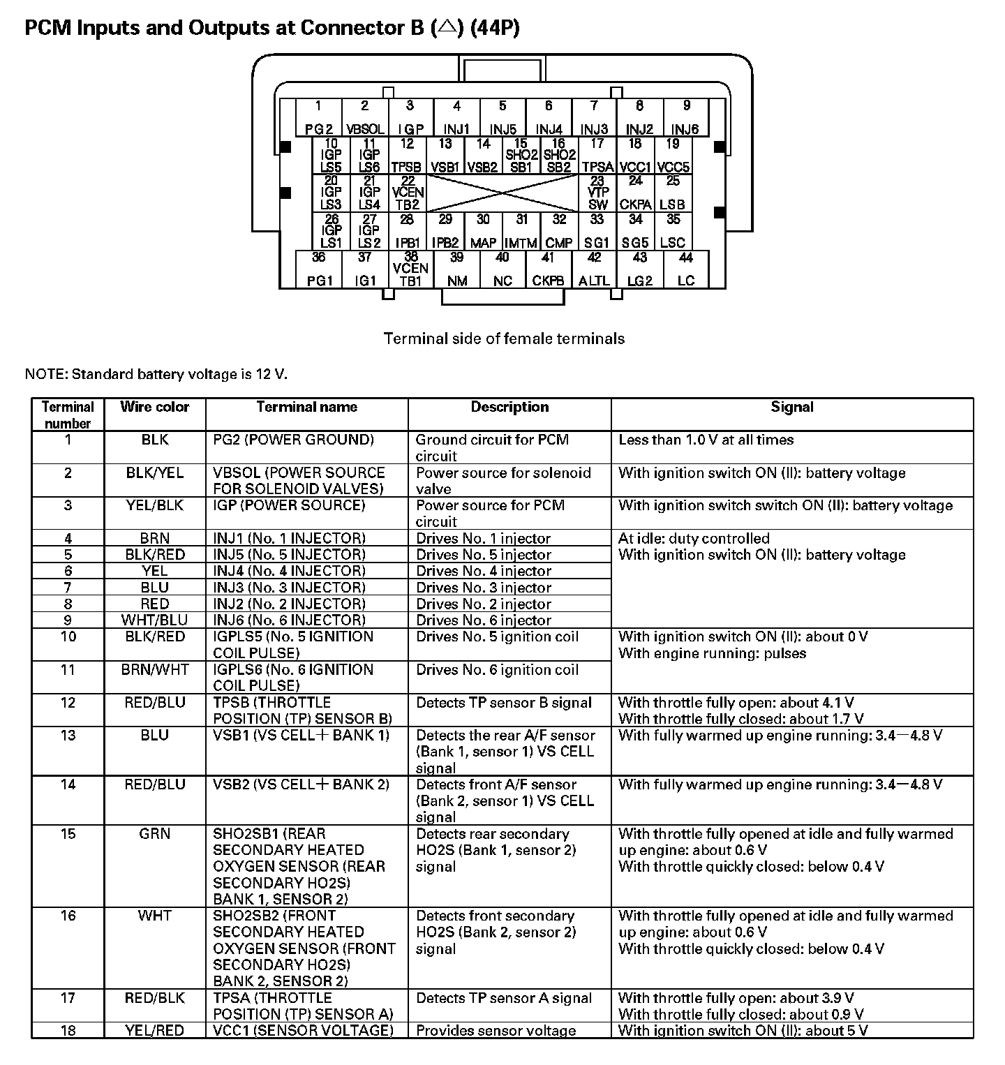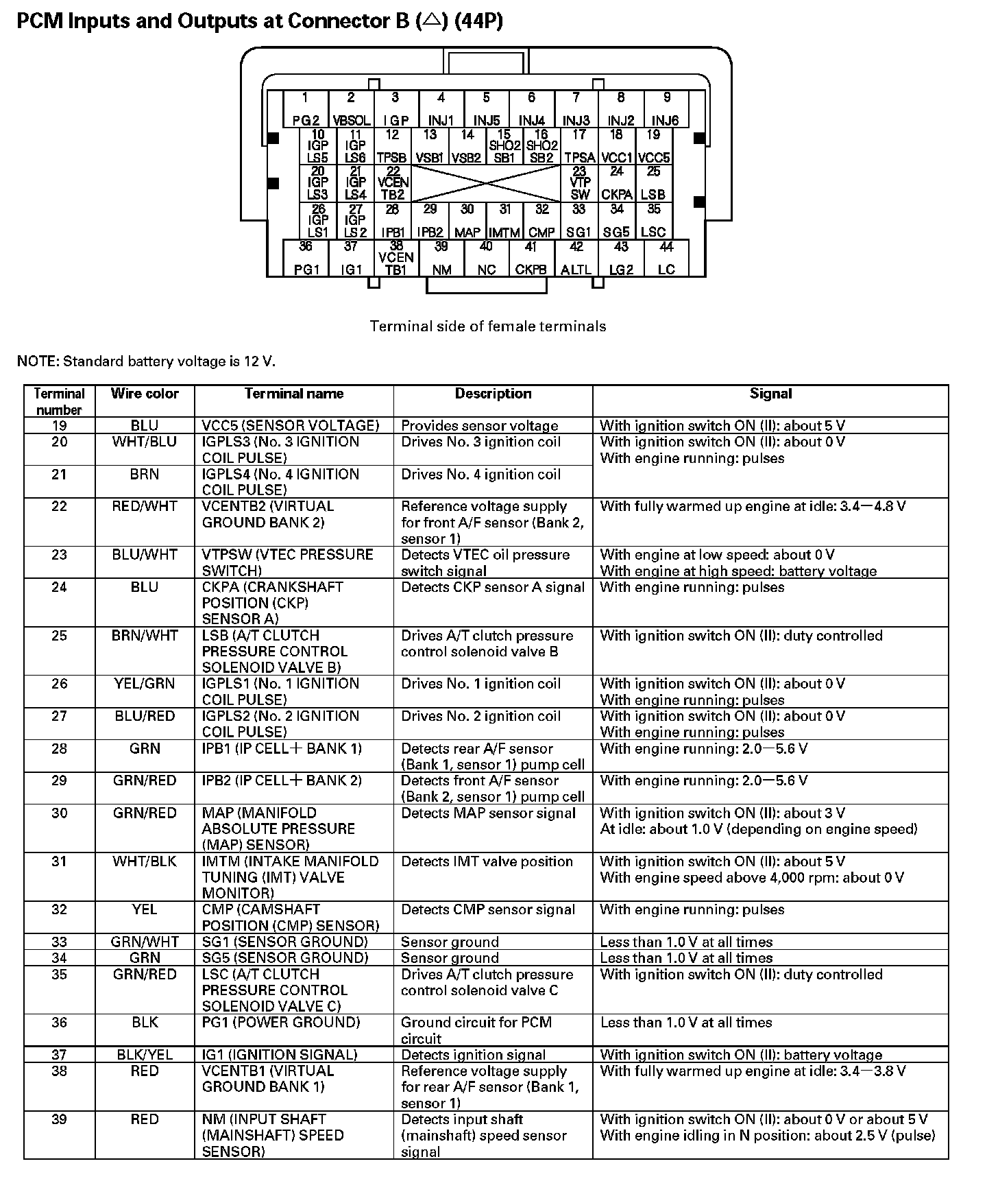 PCM Inputs And Outputs At Connector B (44P) (Part 1):