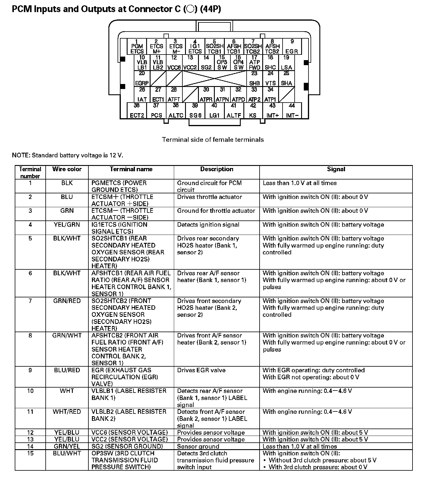 PCM Inputs And Outputs At Connector C (44P) (Part 3):