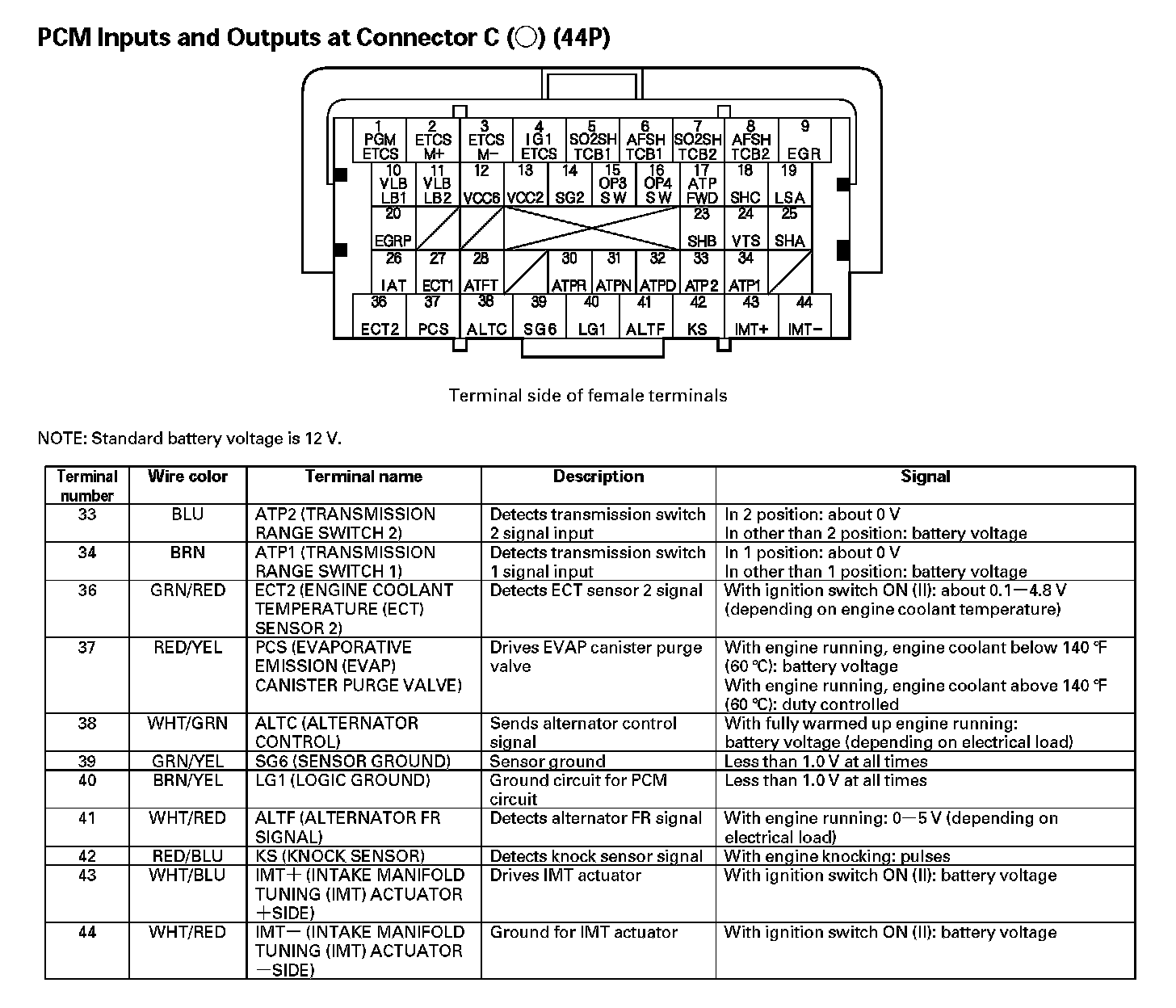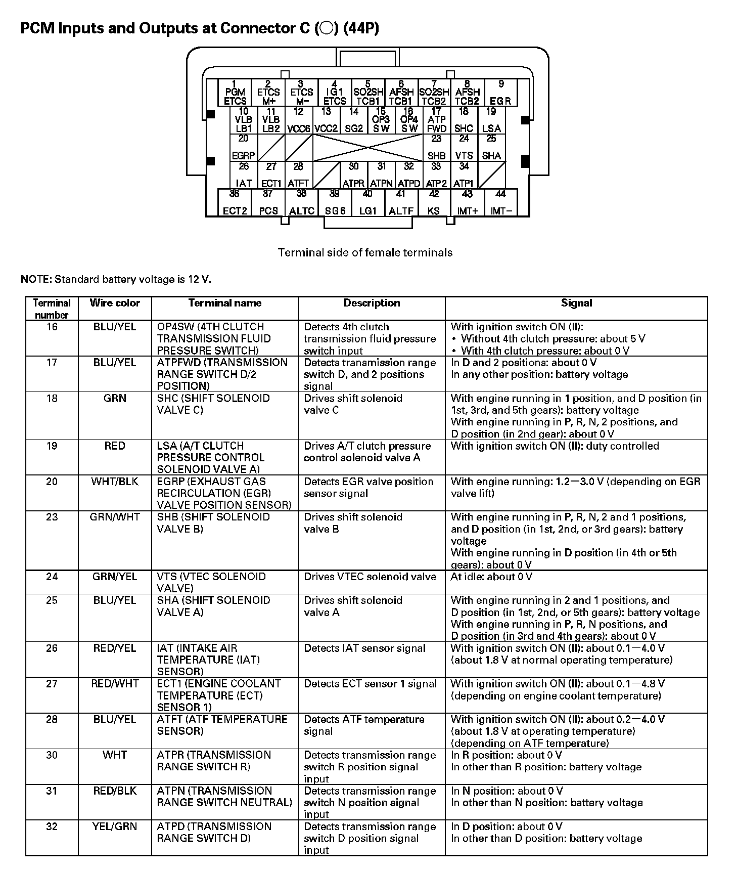 PCM Inputs And Outputs At Connector C (44P) (Part 1):