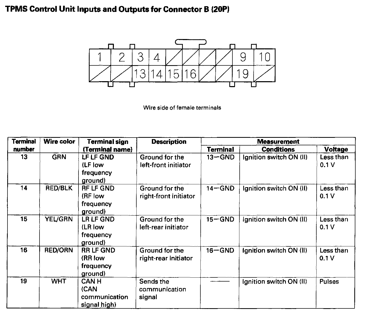 TPMS Control Unit Inputs and Outputs (Part 2):