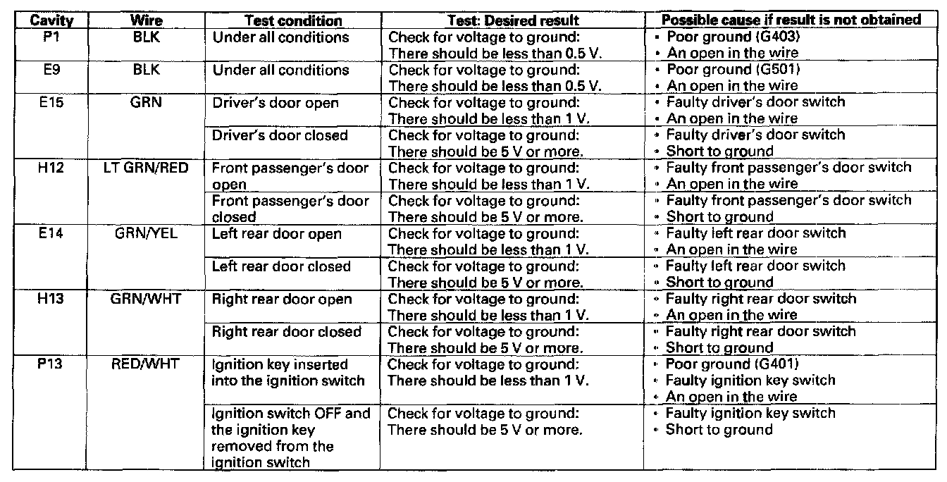 Home >> Honda >> 2007 >> Ridgeline V6-3.5L >> Repair and Diagnosis >> Lighting and Horns >> Testing and Inspection >> Entry Lights Control System >> Control Unit Input Test