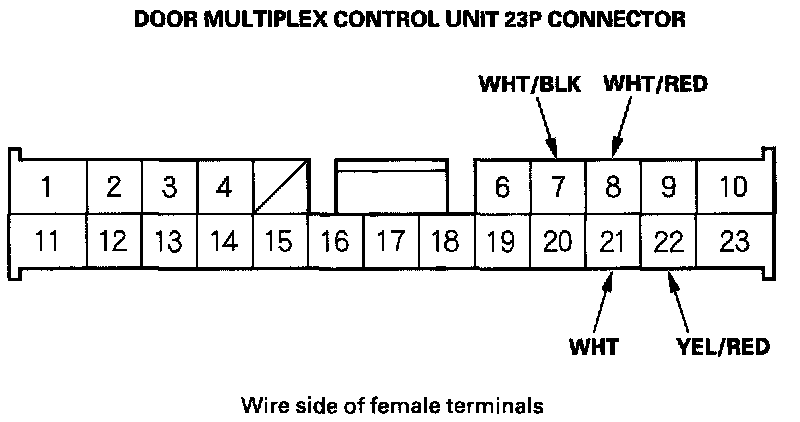 11. Reconnect the connector to the door multiplex control unit. Turn the ignition switch ON (II), and make these input tests at the appropriate connector.