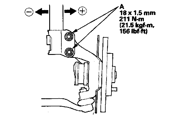 3. Loosen the flange nuts (A) and bolts, and adjust the camber angle by moving the bottom of the damper within the range of the damper pinch bolt free play.
