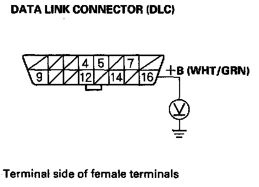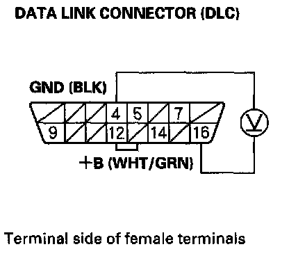 2. Measure voltage between DLC terminals No. 4 and No. 16.