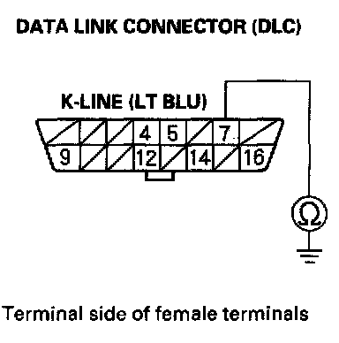 9. Check for continuity between DLC terminal No. 7 and body ground.