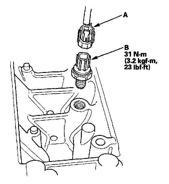 3. Disconnect the knock sensor 1P connector (A), then remove the knock sensor (B).