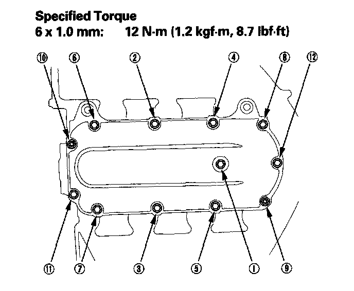 Install the upper cover. Tighten the bolts and nuts sequentially, in two or three steps. Always use a new gasket.