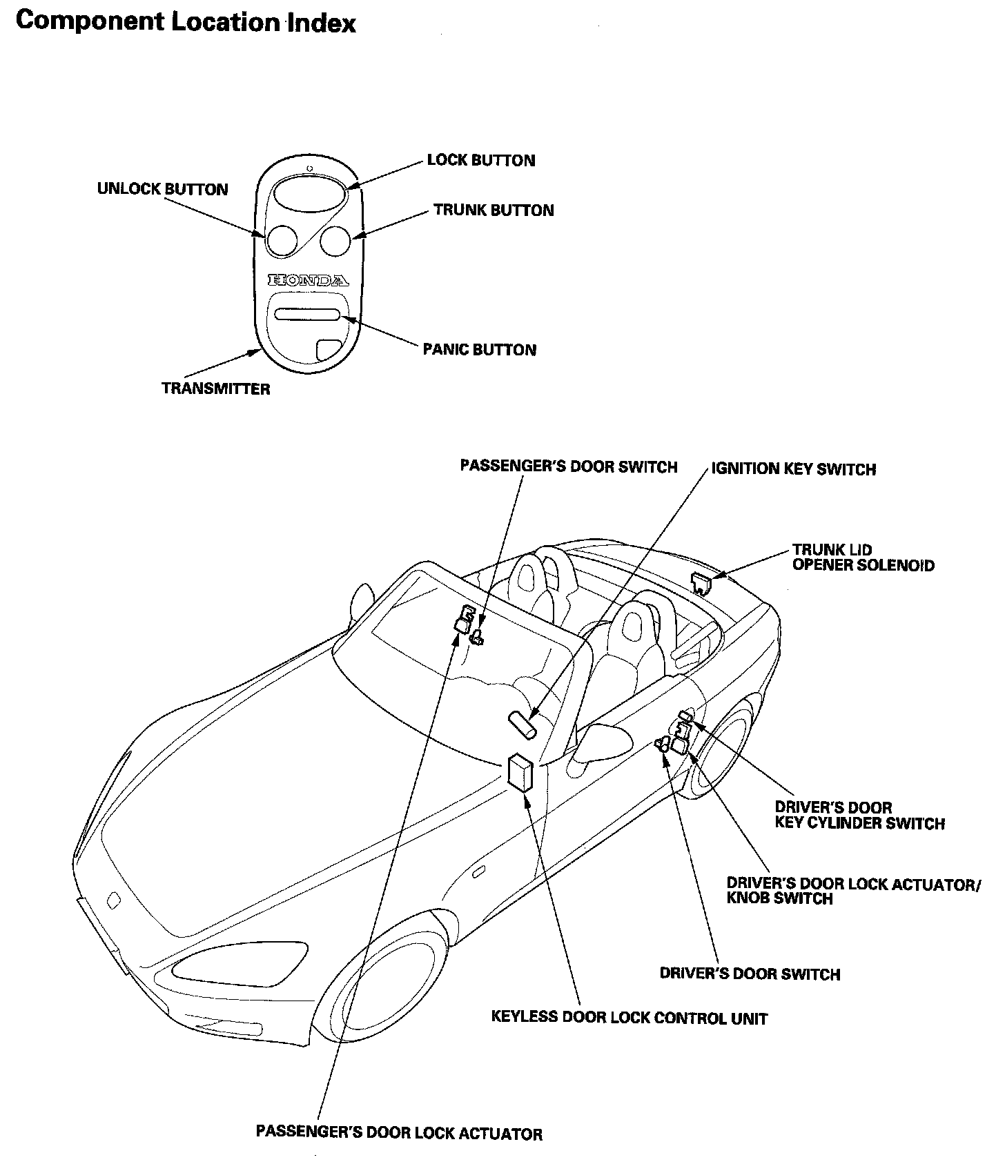 Keyless/Power Door Lock System Component Location Index: