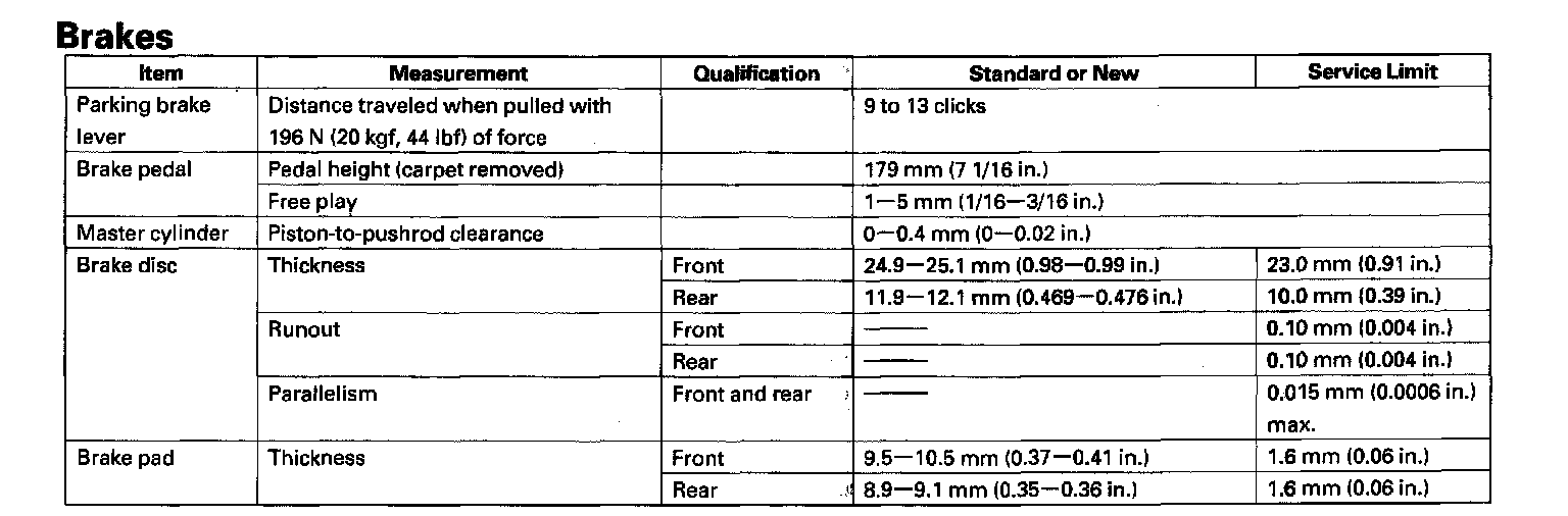 Brakes and Traction Control: Specifications