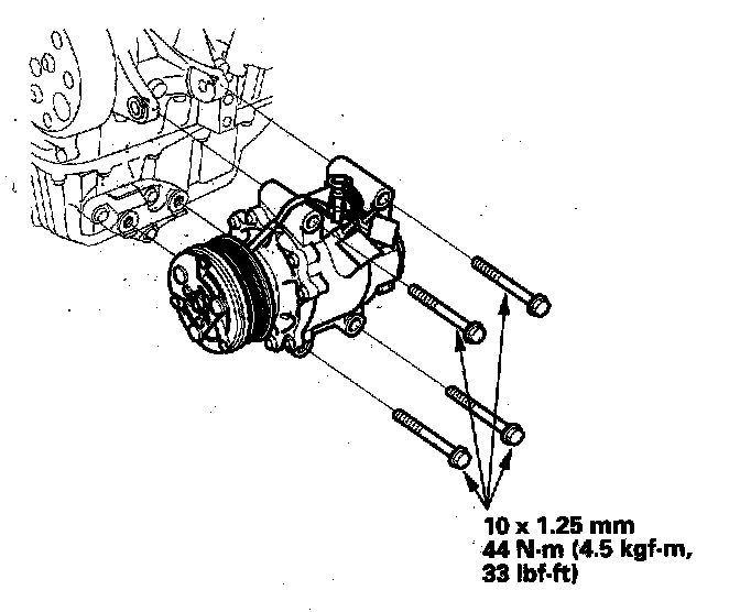 10. Install the A/C compressor in the reverse order of removal, and note these items: