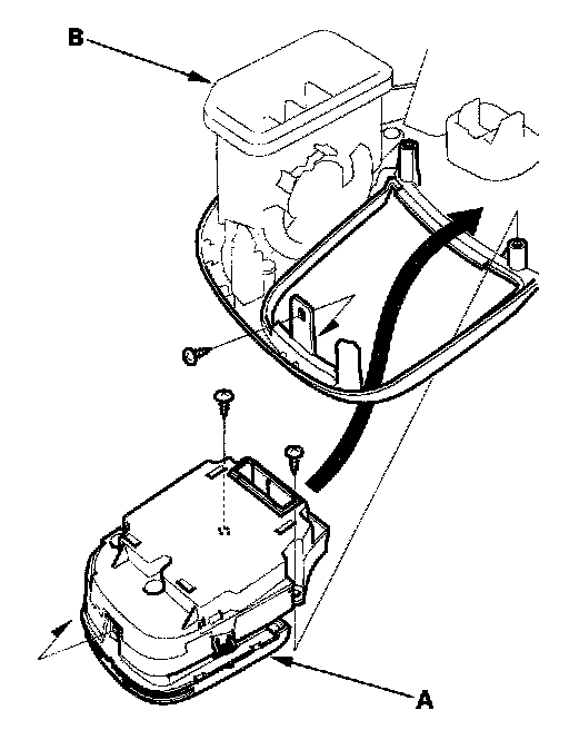 2. Remove the self-tapping screws and the heater control panel (A) from the instrument panel (B).