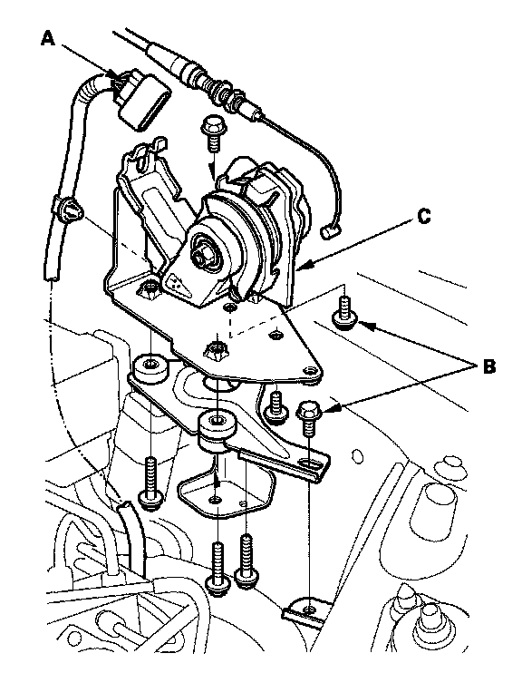 4. Remove the bolts (B) and the APP sensor (C).