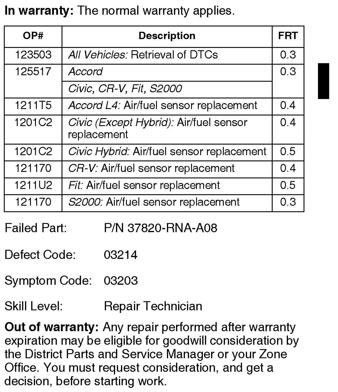 Update the ECM/PCM PGM-FI software, then replace the air/fuel sensor. On certain Fits (see VEHICLES AFFECTED), the PGM-FI update is not needed.