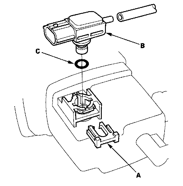 Install the parts in the reverse order of removal with a new O-ring (C).